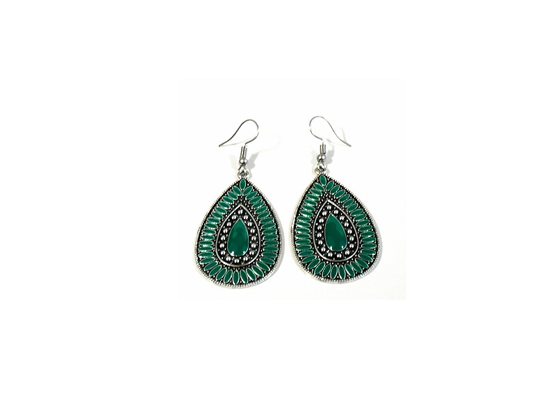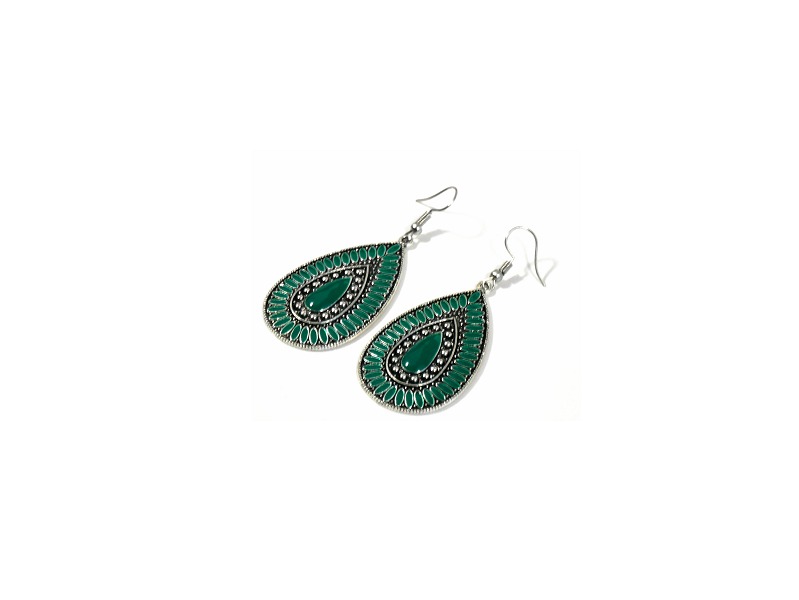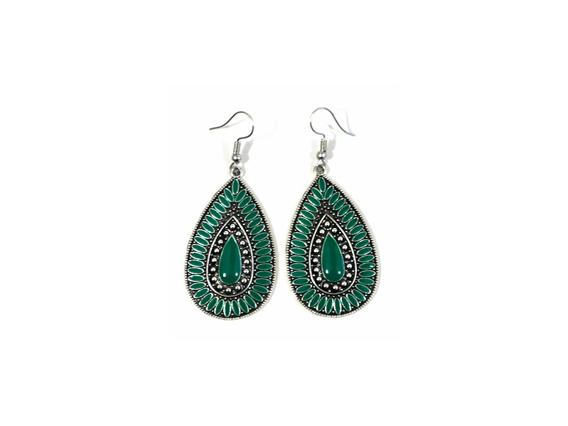 Boucles d'oreilles pendantes, style berbère, fabriquées en métal argenté - composition argent - délicatement ciselé, serties de pierres vert.