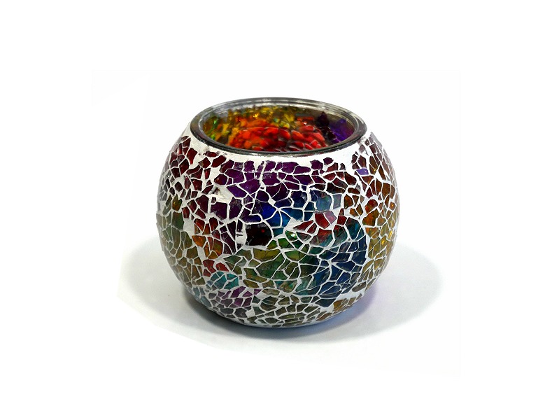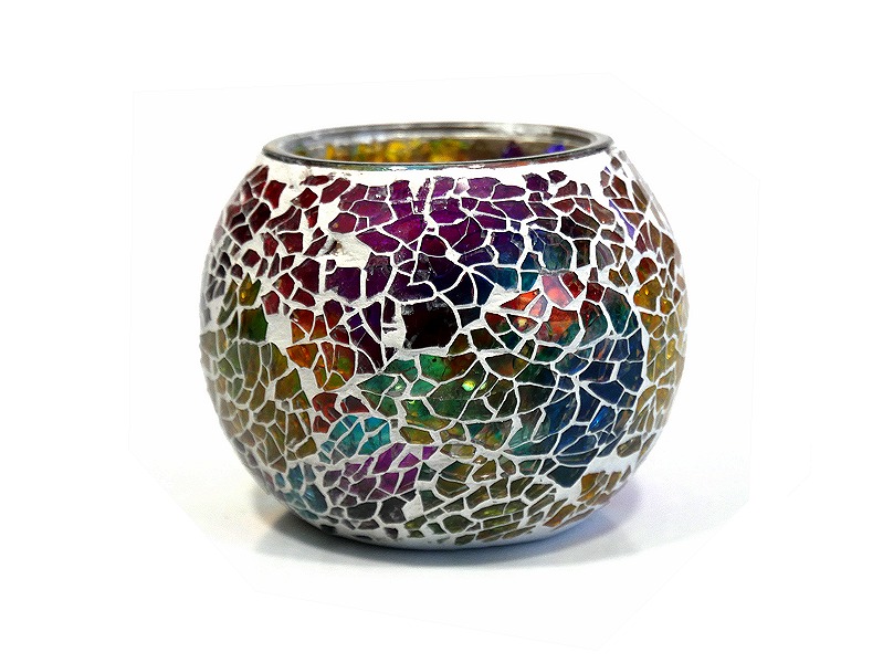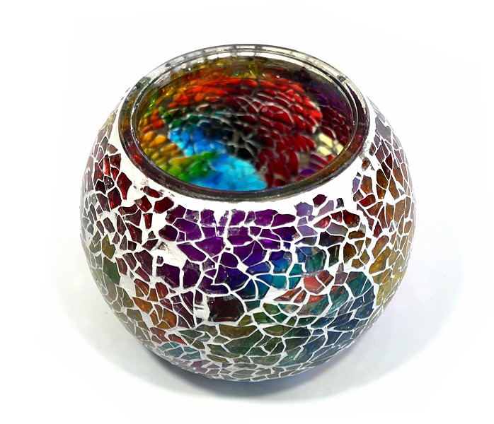 Bougeoir artisanal - Objet décoratif en verre mosaïque coloré - REF. 29248 (12.00 €)