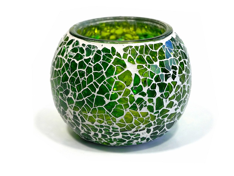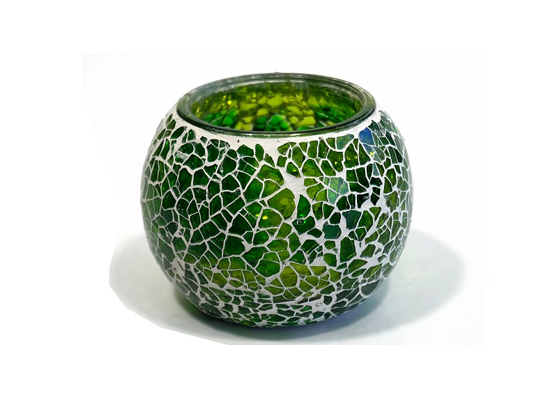 Bougeoir artisanal - Objet décoratif en verre mosaïque coloré - REF. 29246 (12.00 €)