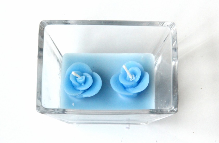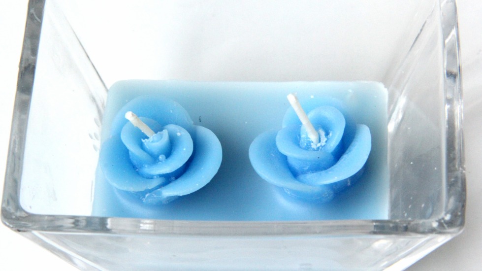 Bougie parfumée sous forme de fleur de couleur bleu ciel avec ruban décoratif - REF. 25897 (1.75 €)