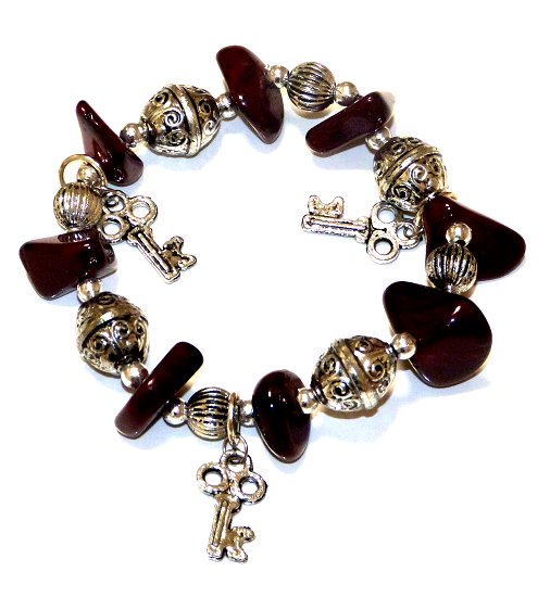 Bracelet artisanal en sabra de couleurs mauve avec pendentif clé - REF. 29777 (4.90 €)