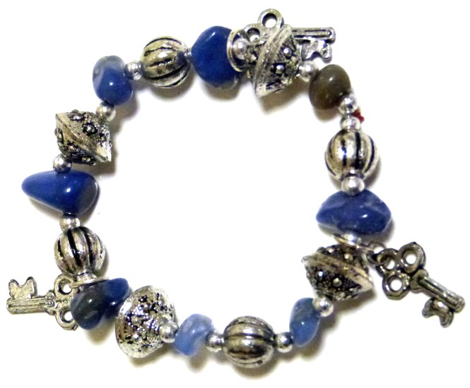 Bracelet artisanal en sabra de couleurs bleu avec pendentif clé - REF. 29778 (4.90 €)