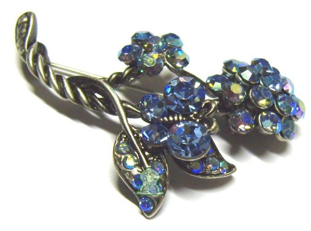 Broche argentée en forme de "bouquet de fleurs bleues" avec perles bleues pour Hijab.
