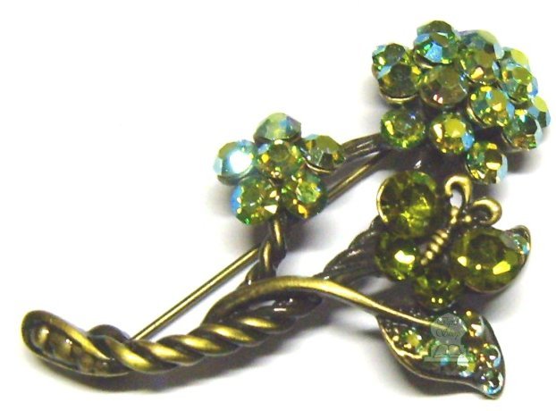 Broche dorée en forme de "bouquet de fleurs vertes" avec perles vertes pour Hijab.