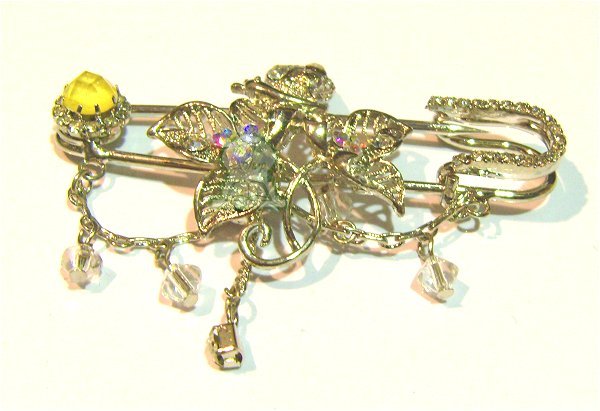 Broche épingle "fleurs" dorée avec diamants jaunes - REF. 6539 (4.50 €)