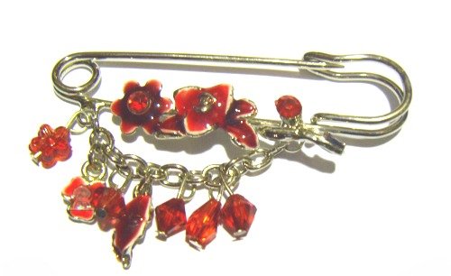 Grande épingle dorée en forme de fleurs rouges avec perles rouges pour Hijab.