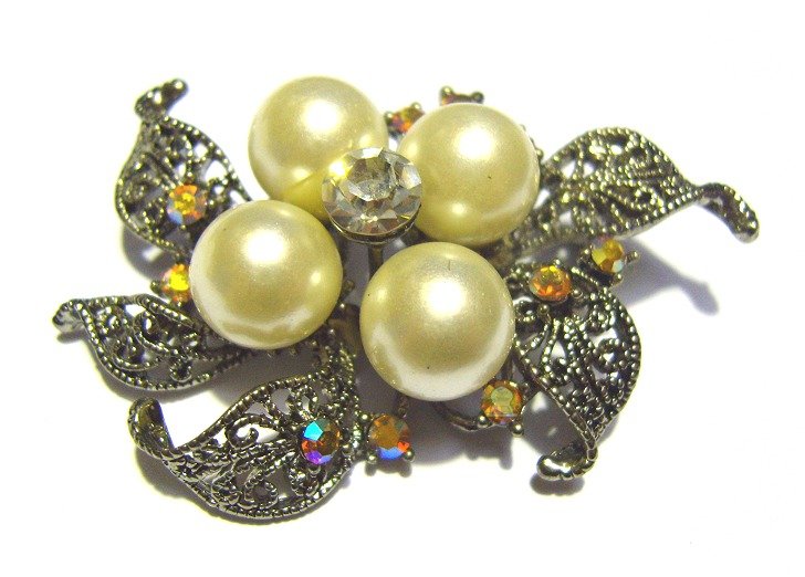 Broche argenté en forme de fleur avec grosses perles dorées pour Hidjab.