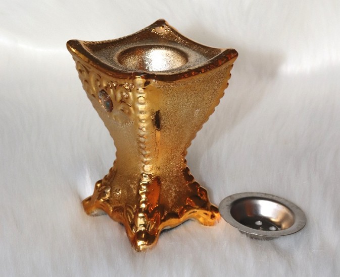Encensoir électrique en métal doré en forme de pyramide carrée - REF. 19339 (13.00 €)