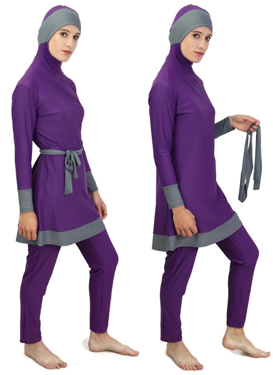 Burkini islamique (vetement de plage pour musulmanes) - Couleur violet et gris