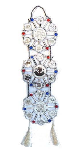Décoration argentée avec inscriptions Sourates "Al Fatiha", "Al-Ikhlâss" et "Al-Falaq" - REF. 21749 (8.50 €)