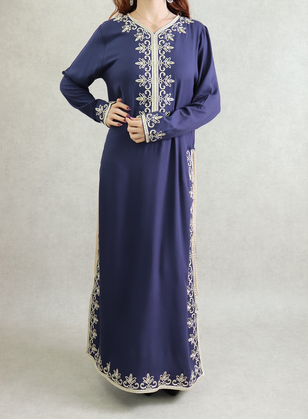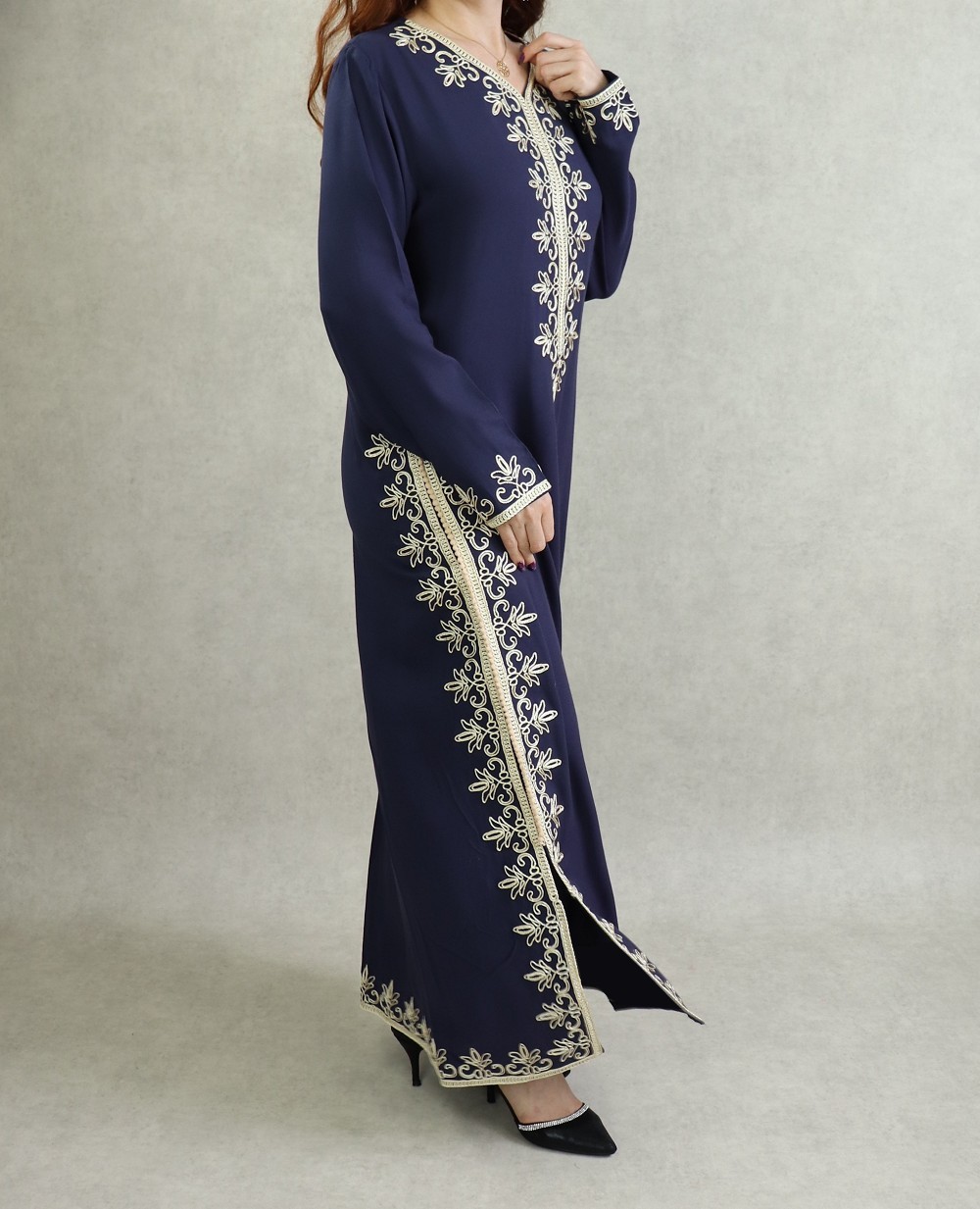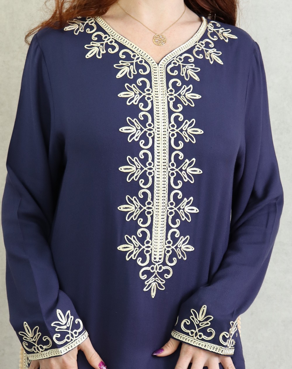 Caftan maghrébin avec broderie - Couleur Bleu marine Vetement & Accessoire