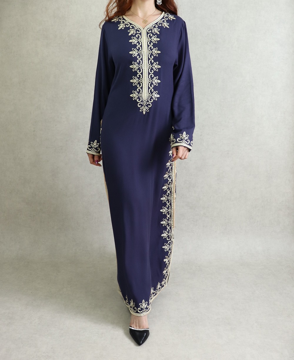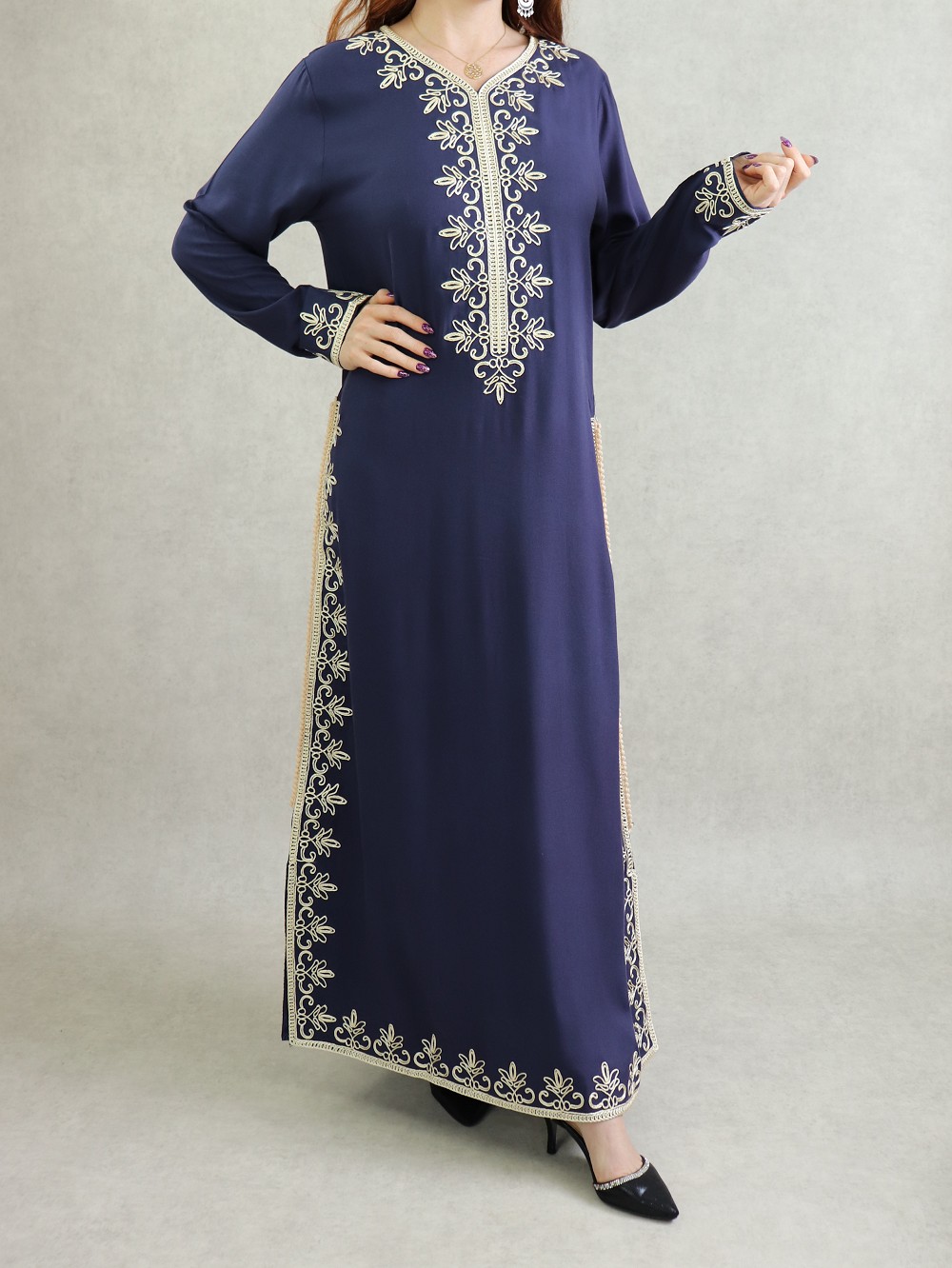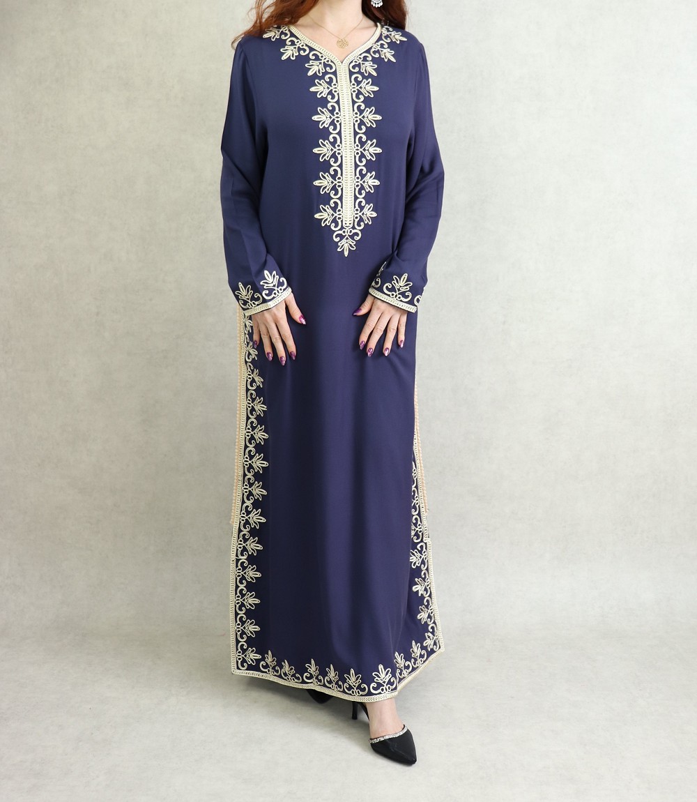 Caftan maghrébin avec broderie - Couleur Bleu marine Vetement & Accessoire