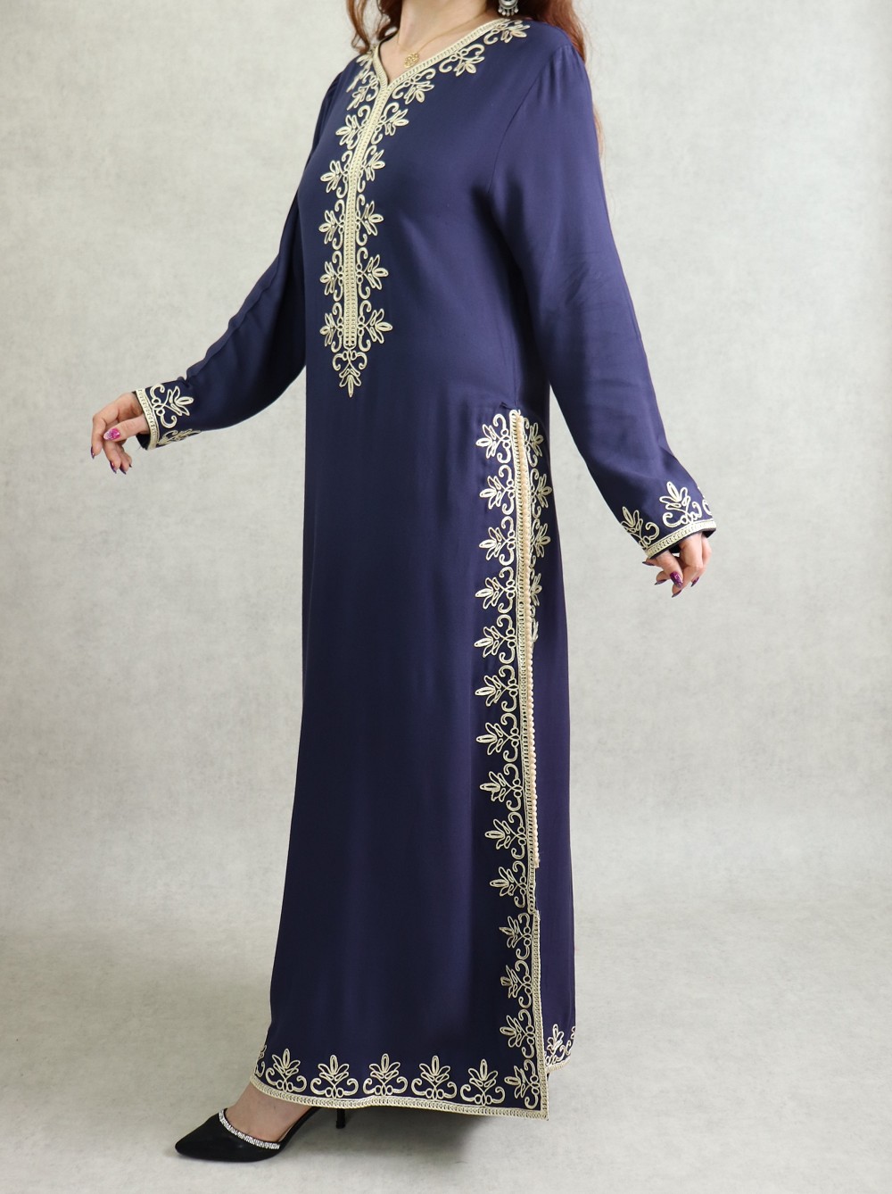 Caftan maghrebin avec broderie - Couleur Bleu marine