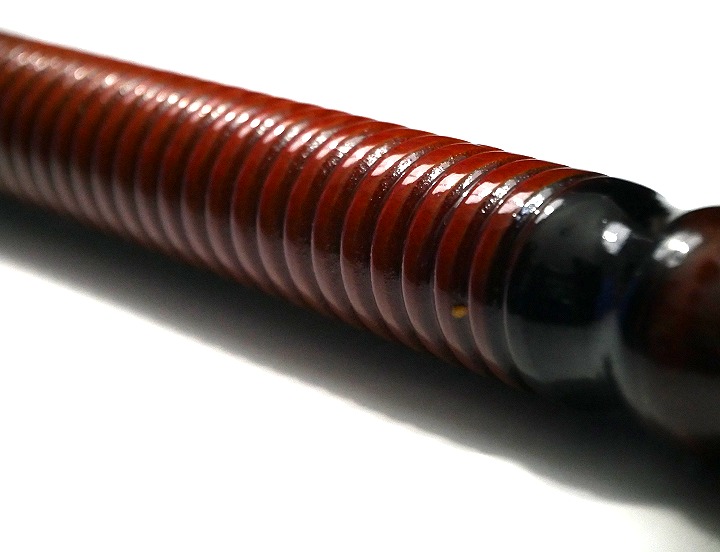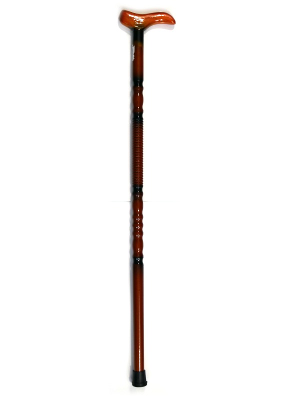 Canne en bois sculpte vernis marron avec embout antiderapant