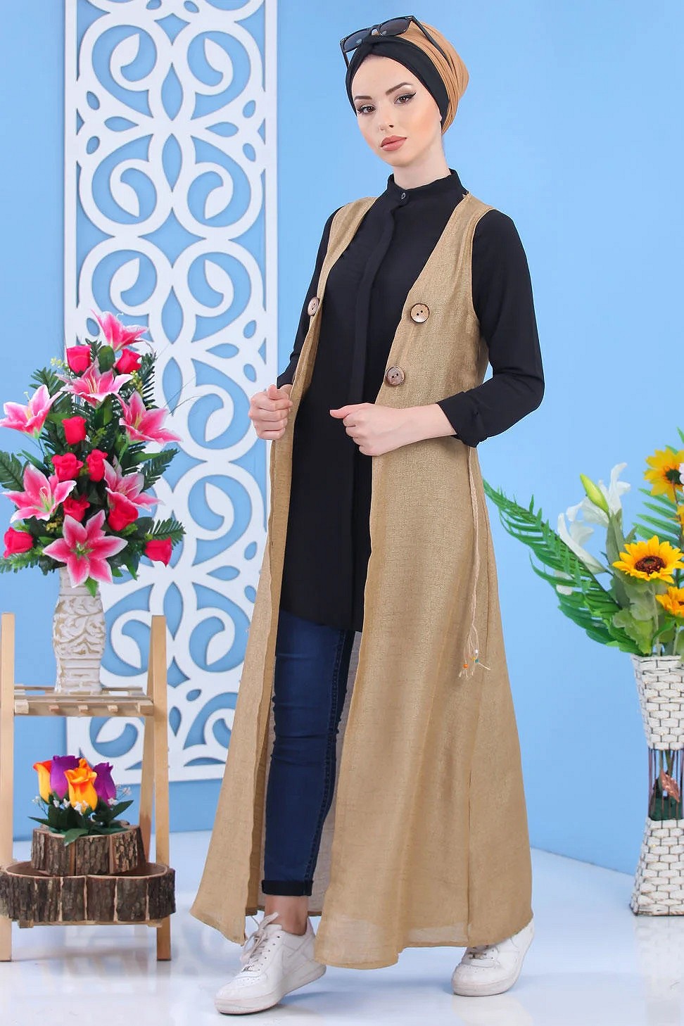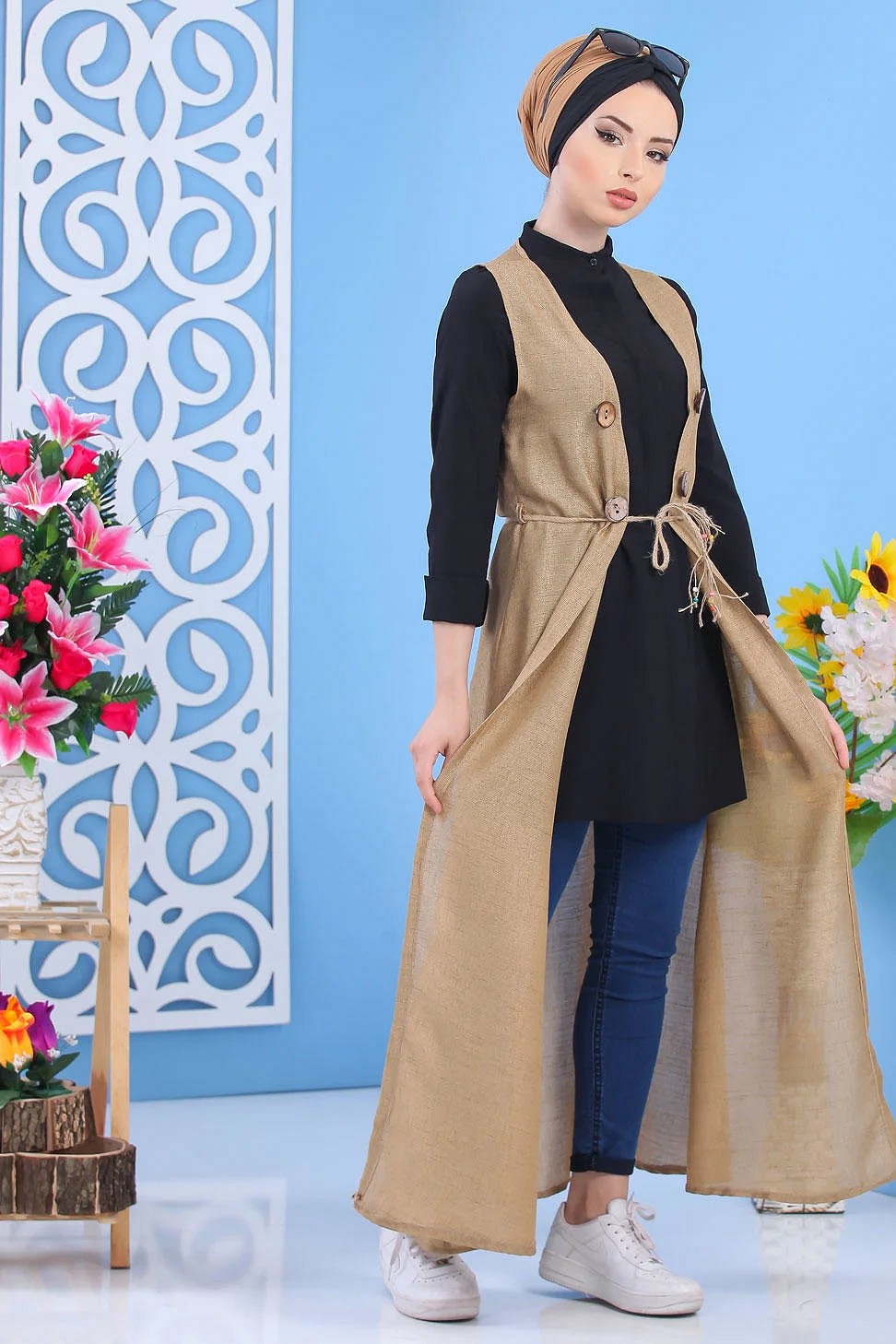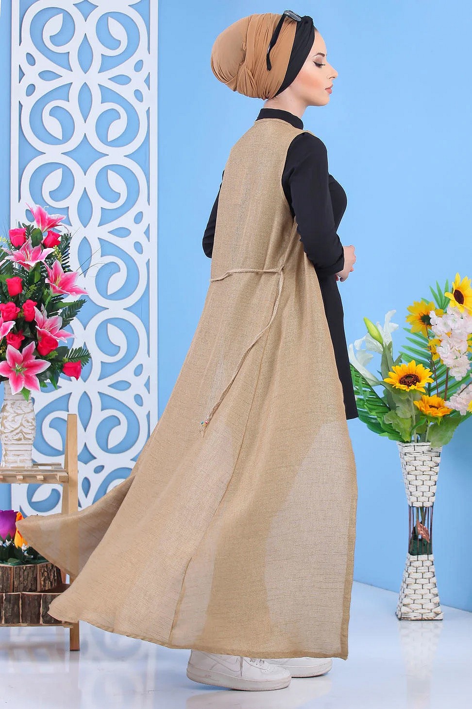 Cardigan Gilet long sans manches - Couleur Camel Vetement & Accessoire