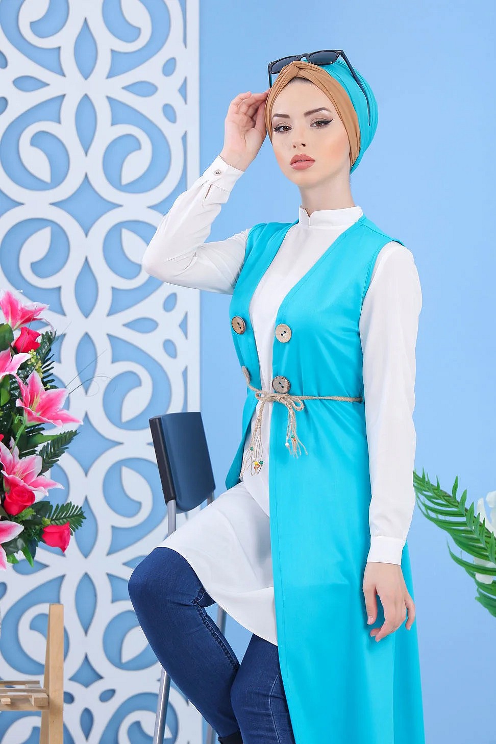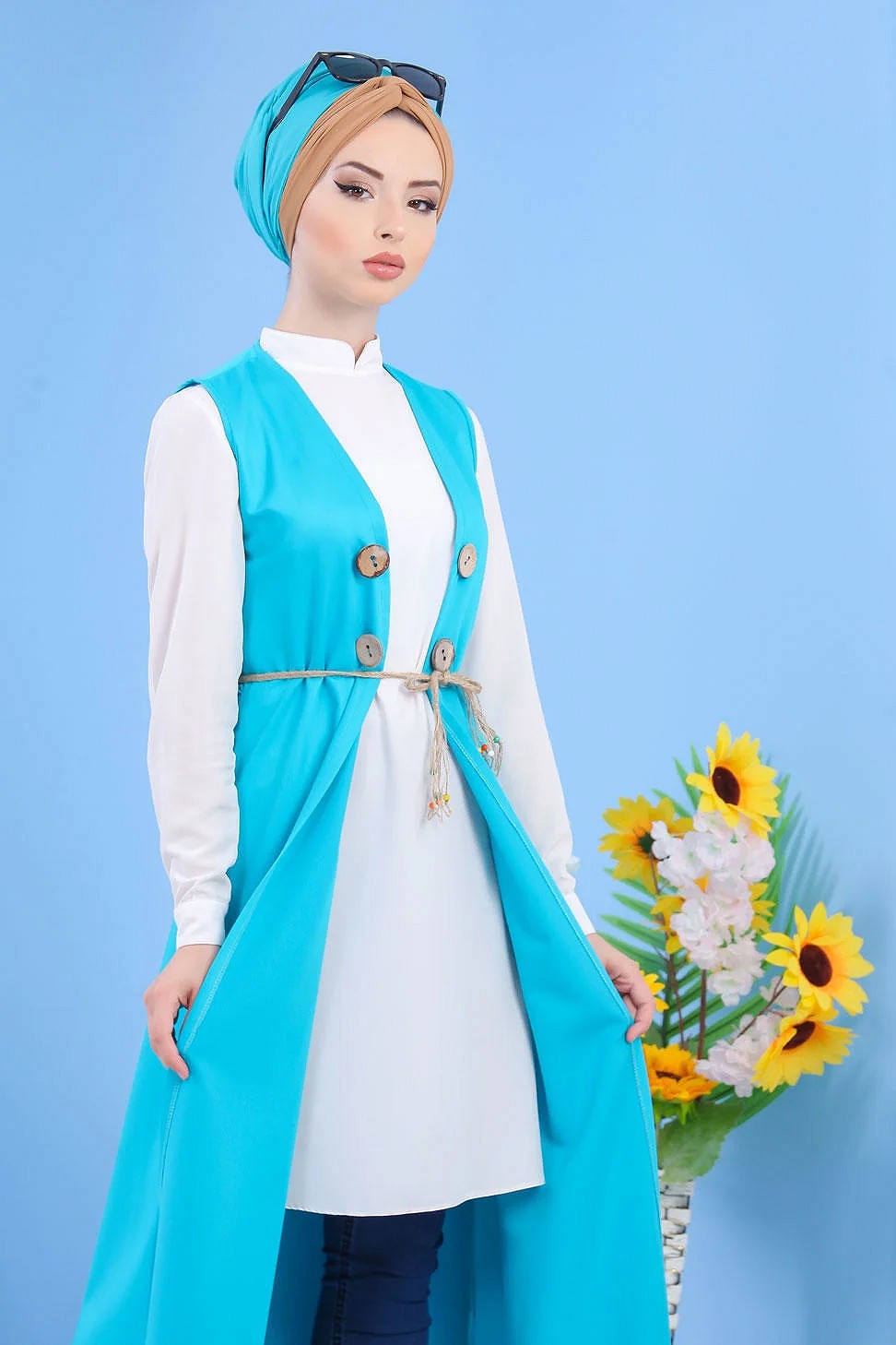 Cardigan à lacets (Boutique Musulmane Hijab en Ligne France) - Couleur menthe - REF. 35833 (19.90 €)