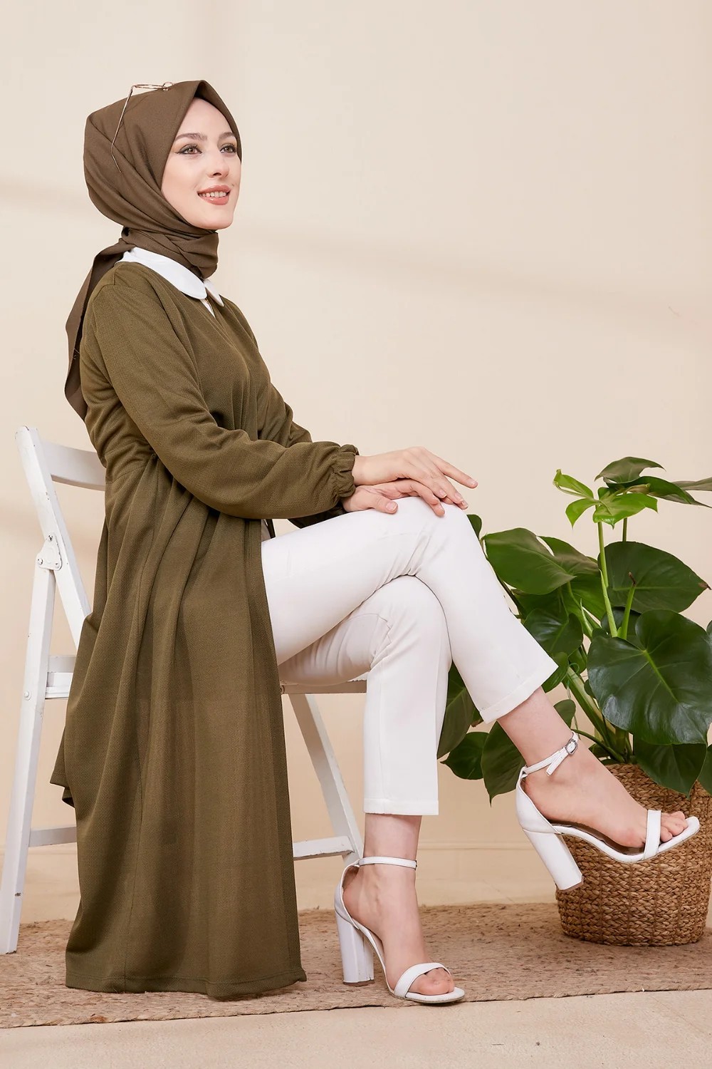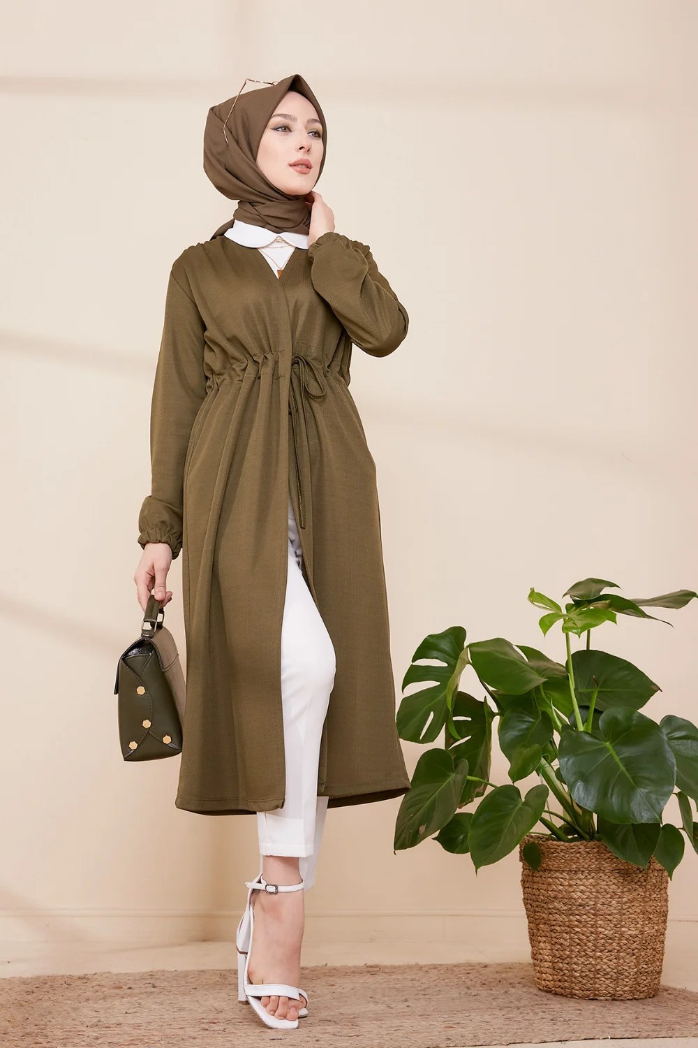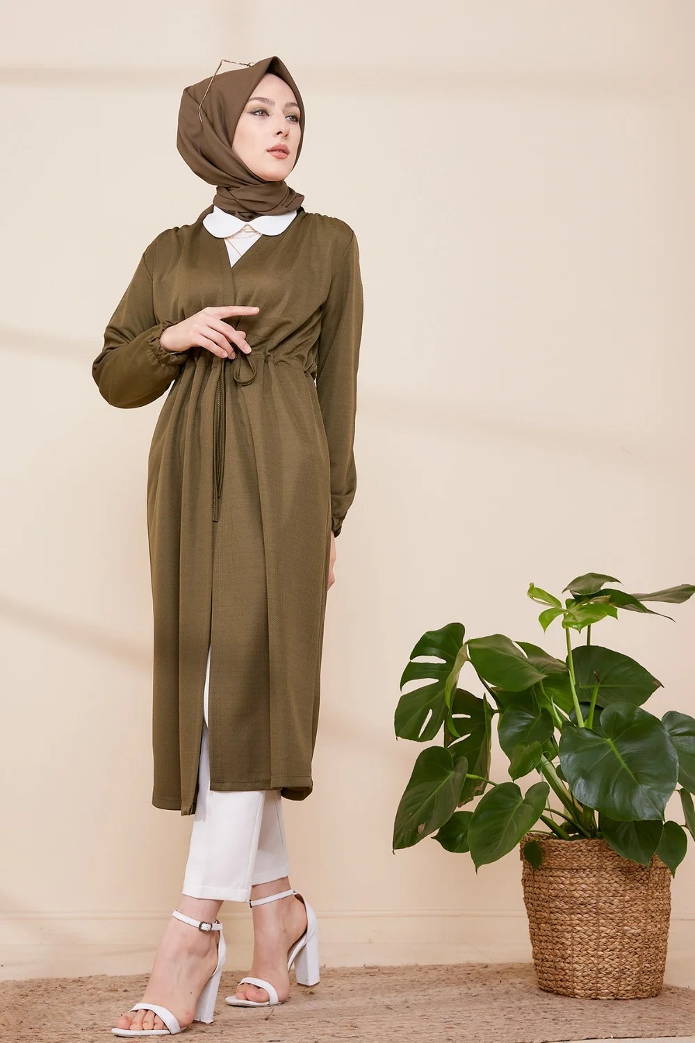 Veste longue classique boutonnée élégante (Vêtement Hijab pour femme voilée) - Couleur kaki