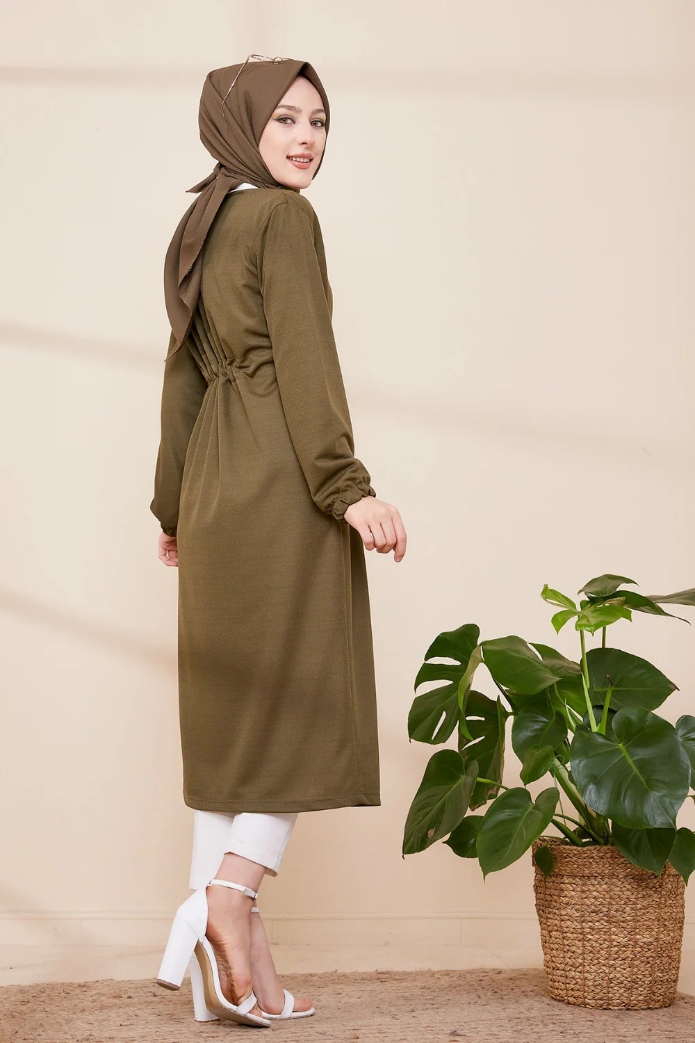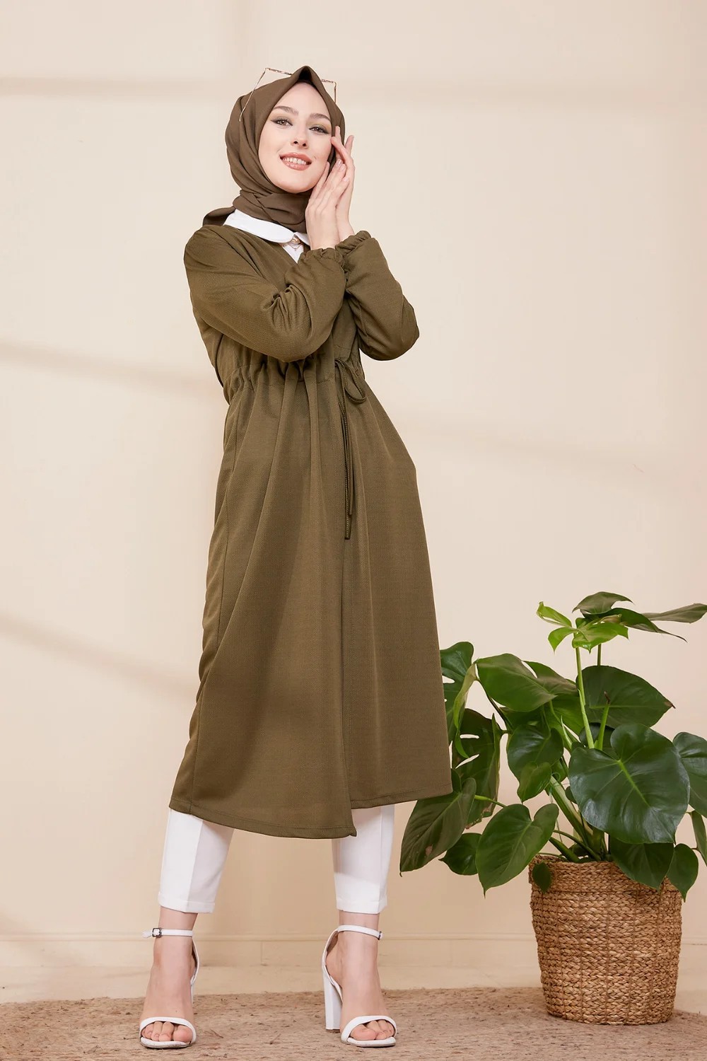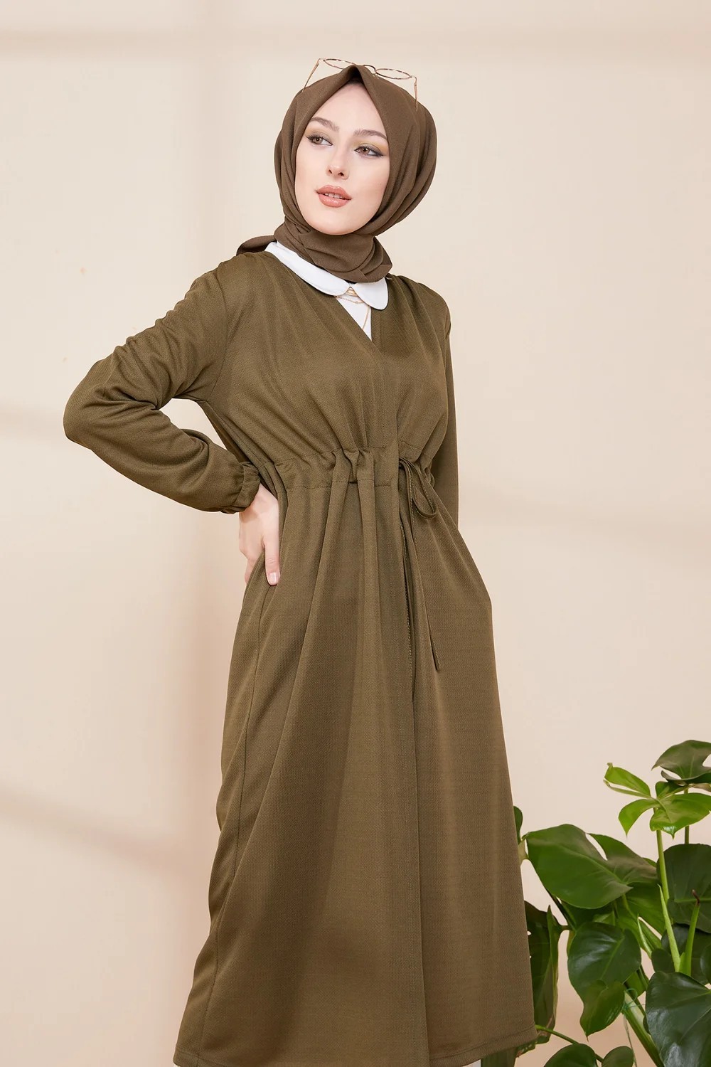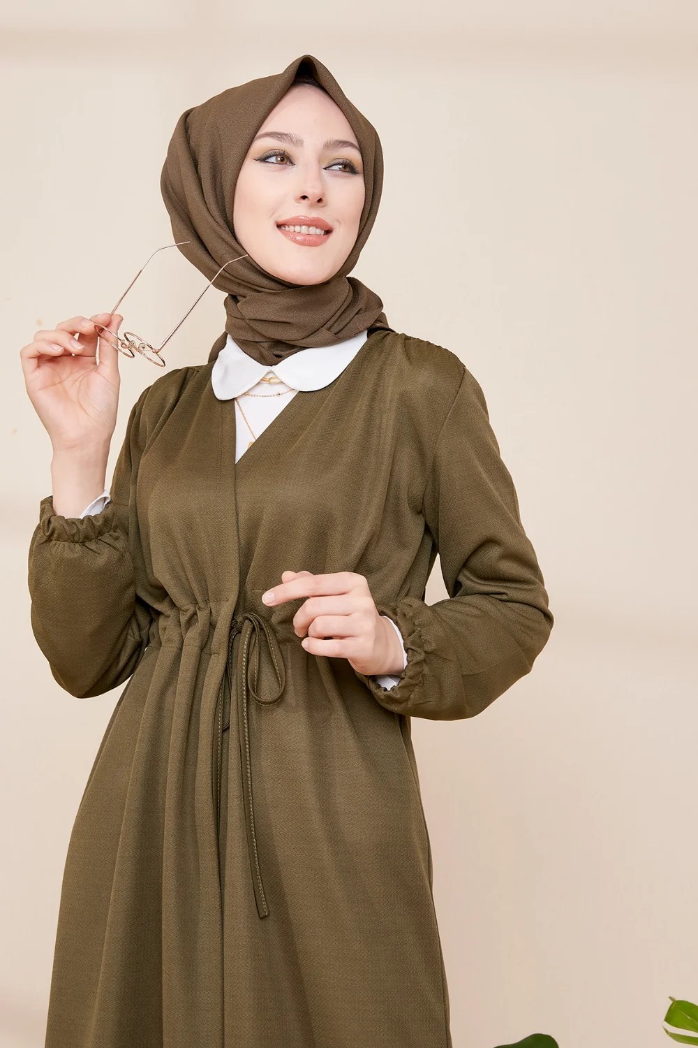 Veste longue classique boutonnée élégante (Vêtement Hijab pour femme voilée) - Couleur kaki