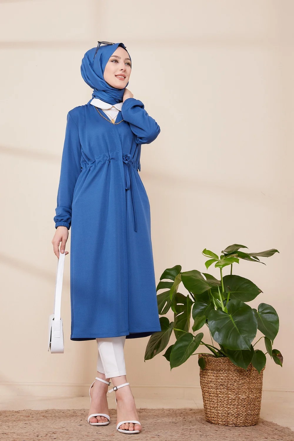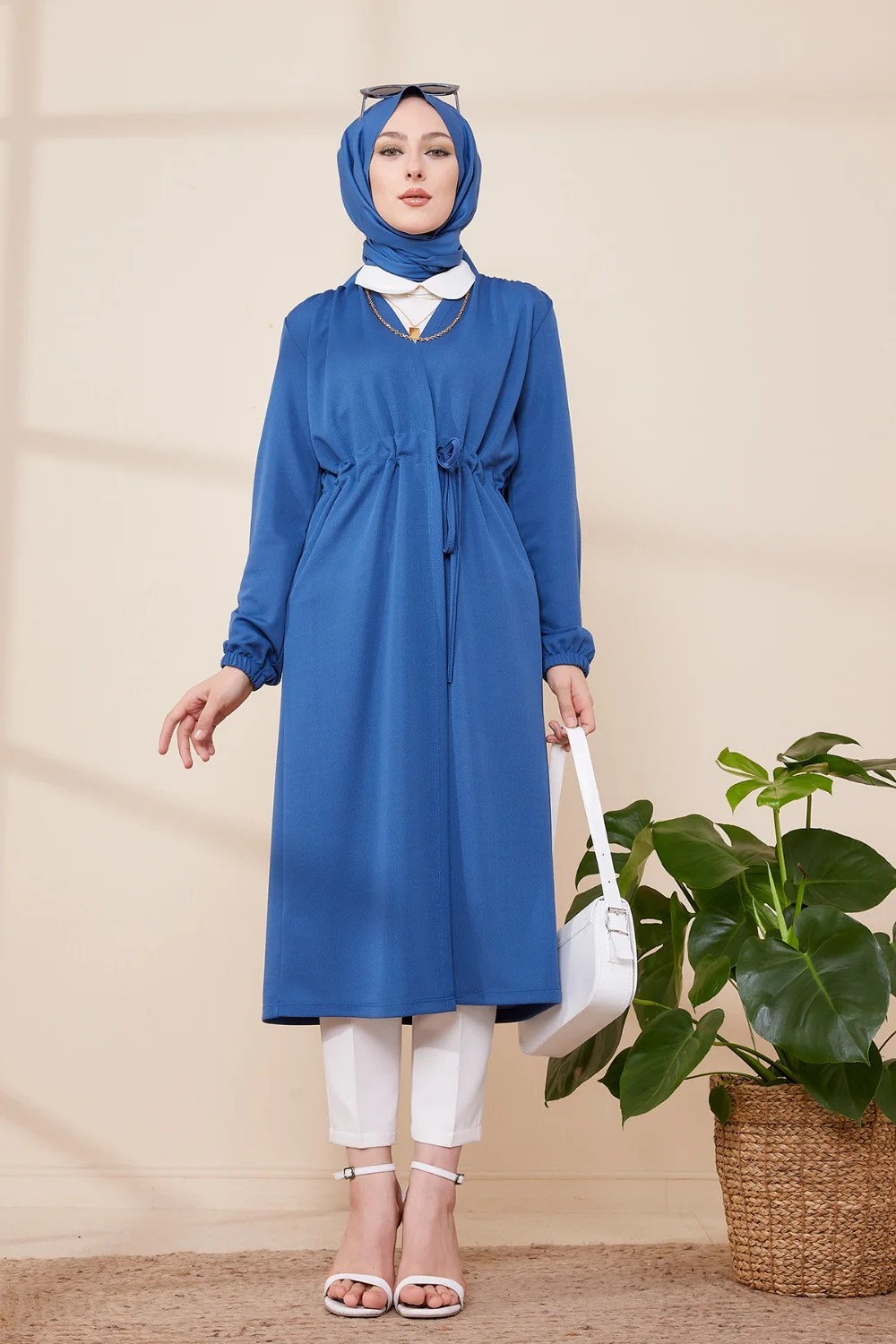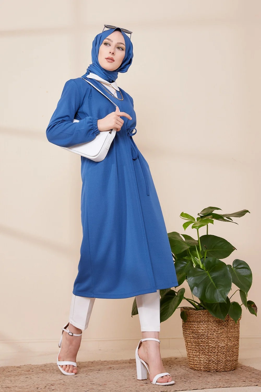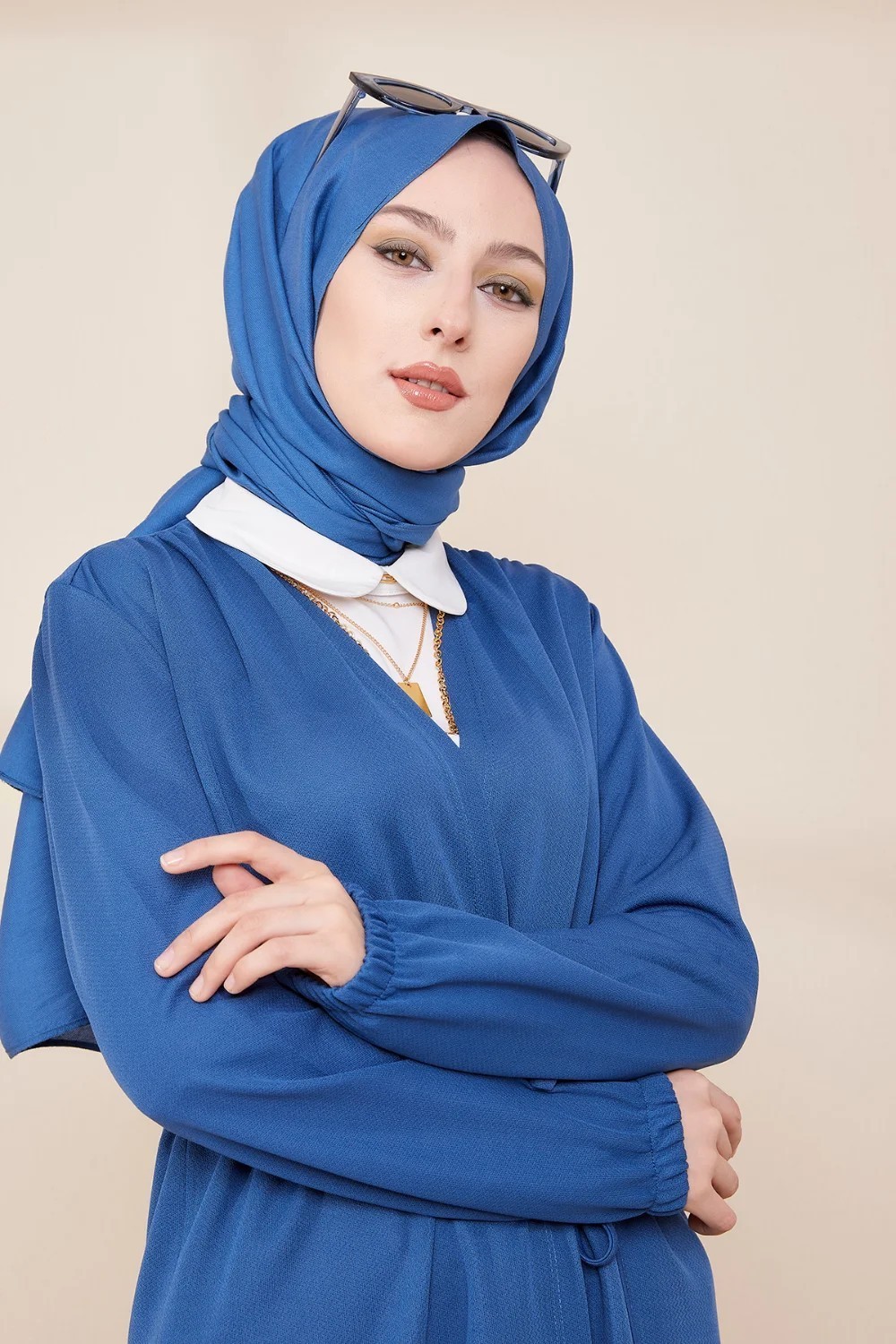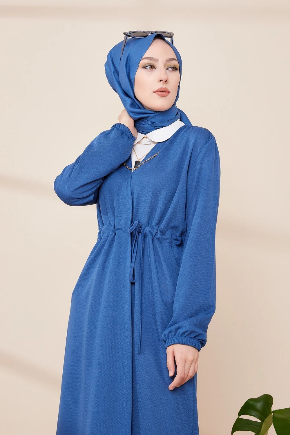 Tunique longue avec collier offert (Vetement hijab femme chic) - Couleur bleu indigo - REF. 36333 (26.90 €)