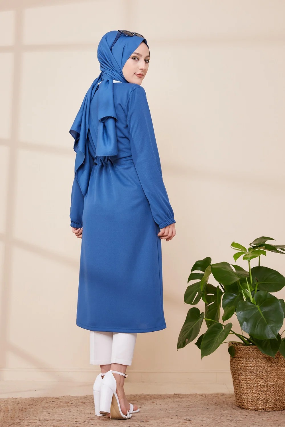 Veste Tunique boutonnée à capuche (Vetement moderne pas cher pour femme voilée) - Couleur bleu indigo - REF. 32862 (19.90 €)