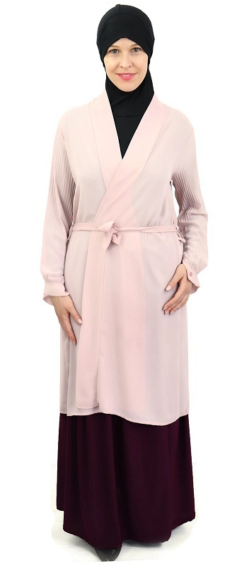 Cardigan mousseline manches plissées couleur rose clair Vetement & Accessoire