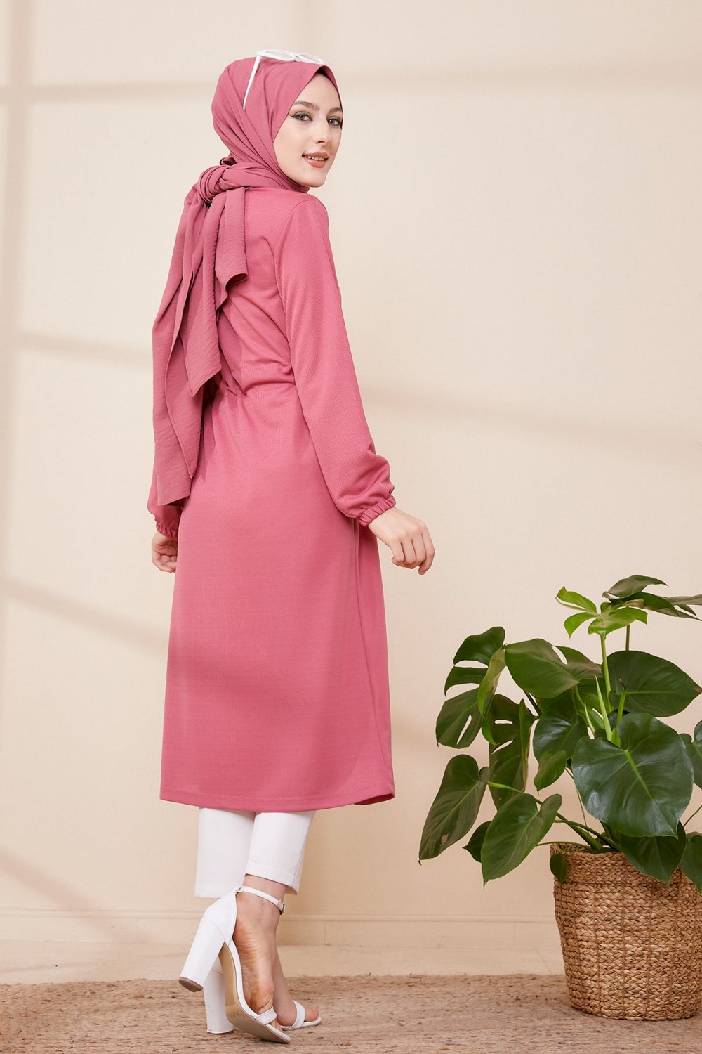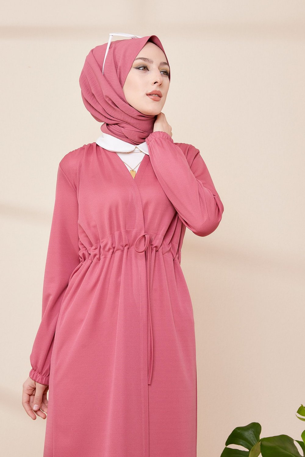 Veste longue classique boutonnée élégante (Vêtement Hijab) - Couleur framboise - REF. 32950 (24.90 €)