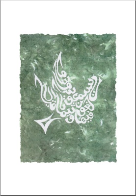 Grande Carte de voeux double : Calligraphie arabe "Nous vous souhaitons une joyeuse fête" (sous forme d'oiseau) - REF. 9161 (2.00 €)