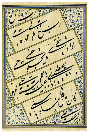 Carte postale calligraphique arabe avec la célèbre poésie dont le premier vers est "Peut-être ai-je un frère que ma mère n'a pas enfanté...", "رب إخ لي لم تلده أمي", (Poésie du poète Ash-Sharif Ar-Radiy de la période de la dynastie des Abassides).