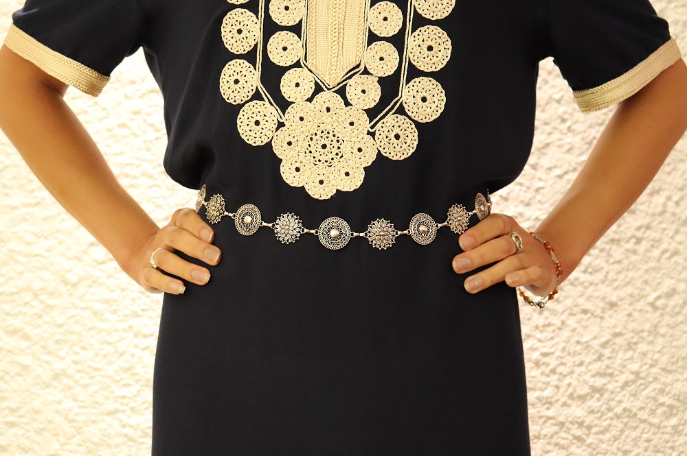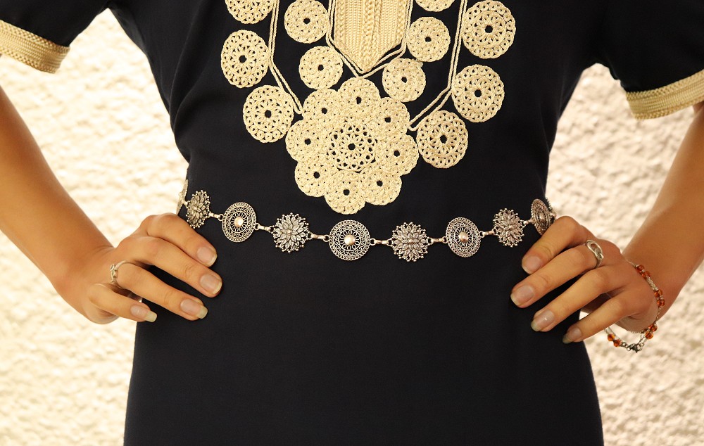 Ceinture argentée ornée de pièces à motifs originaux Vetement & Accessoire