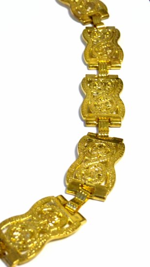 Bracelet fantaisie femme en métal doré garni d'une bande de perles ovales de couleur noire - REF. 15325 (2.00 €)