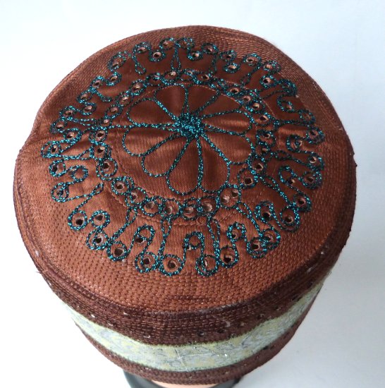 Chachia traditionnelle de couleur marron avec décoration tout autour... De petits trous discrets permettent la respiration de la tête pour un meilleur confort.