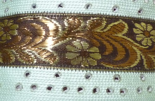 Chachia rigide bleu ciel avec des jolies decorations dorée et vert - REF. 22660 (3.50 €)
