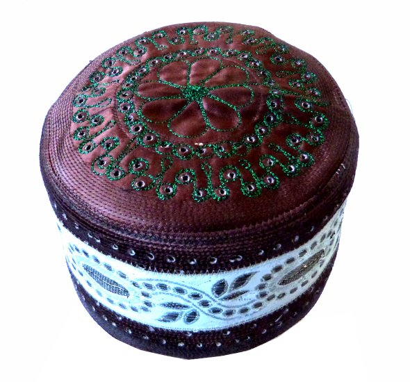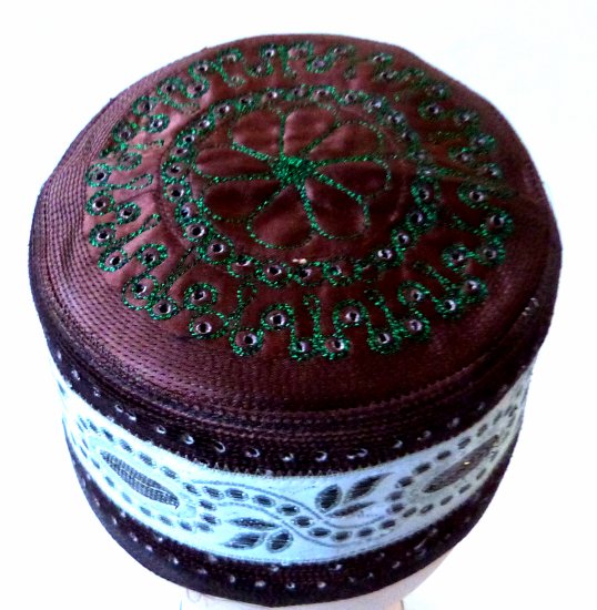 Jolie chachia marron rigide et brodée, faite à la main de façon traditionnelle.