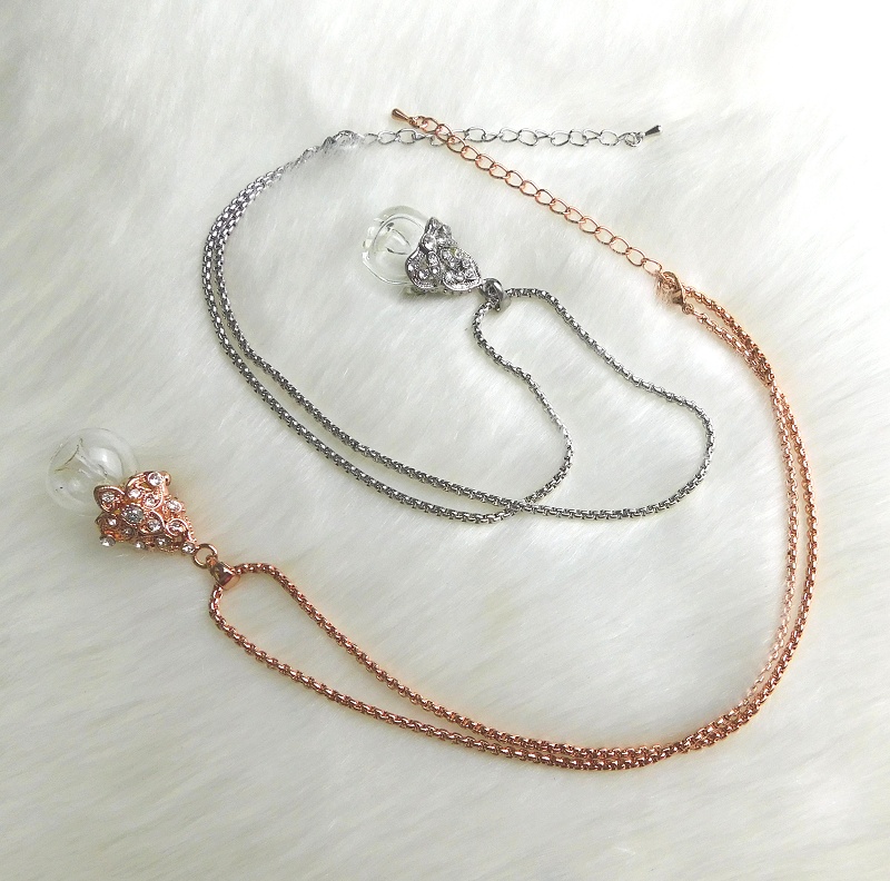 Chaîne dorée avec bijoux pendentif décoré de diamants pouvant contenir du parfum. Pour emporter son parfum préféré toujours sur soi.