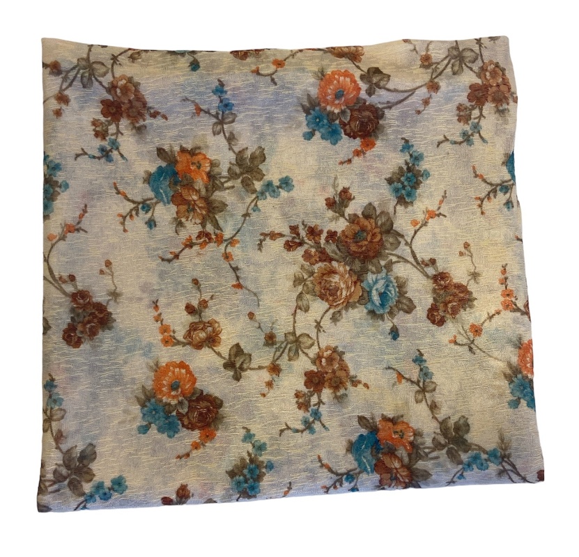 Chale Hijab a fleurs pour femme - Fleur marron, orange et bleu sur un fond beige