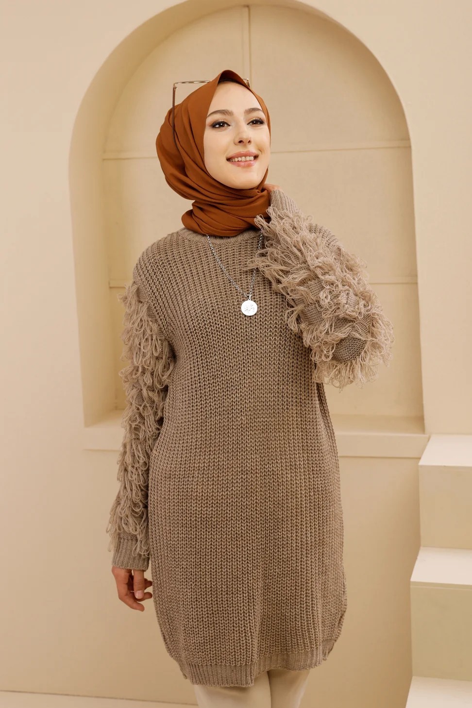Chandail - Tricot long pour femme - Couleur beige (vison) Vetement & Accessoire