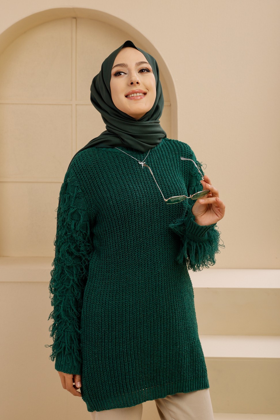 Chemise longue et ample pour femme (Vêtement hijab moderne) - Couleur vert émeraude - REF. 38589 (28.00 €)