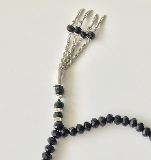 Chapelet "Sebha" de luxe à 99 perles en cristal décoration métallique et perles - Couleur noir - REF. 35232 (12.00 €)
