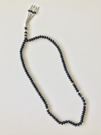 Sabha Chapelet 33 perles cristal bleu marine avec décorations métalliques argentées - Sebha - REF. 14622 (7.50 €)