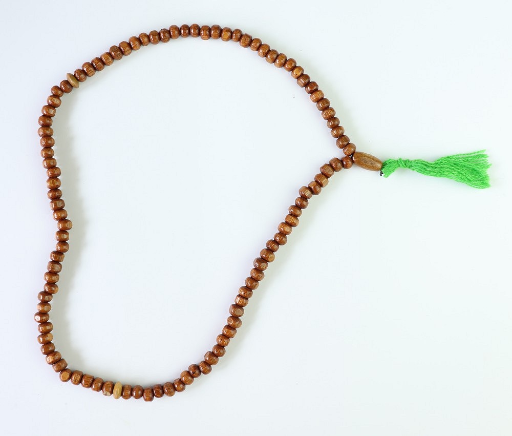 Chapelet artisanal en bois (Sabha) à 99 grains. Avec séparateur tous les 33 grains.