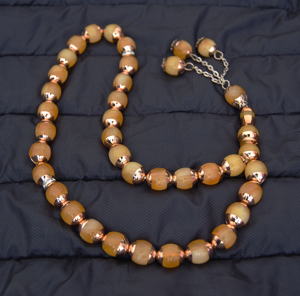 Chapelet (Sebha) à 33 perles de couleur jaune marbré. Avec séparateur toutes les 11 perles.