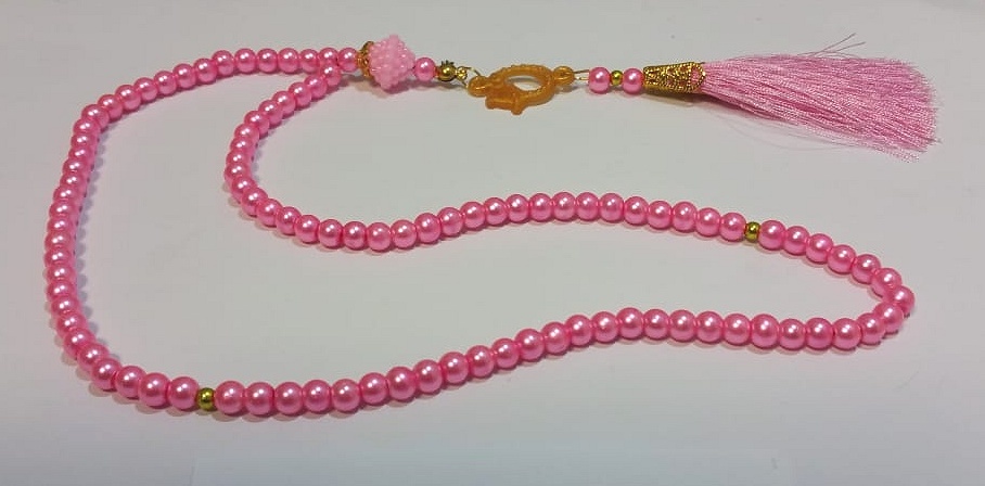 Chapelet "Sebha" de luxe à 99 perles - Couleur rose clair avec 2 séparateurs ronds dorées - REF. 39225 (6.90 €)