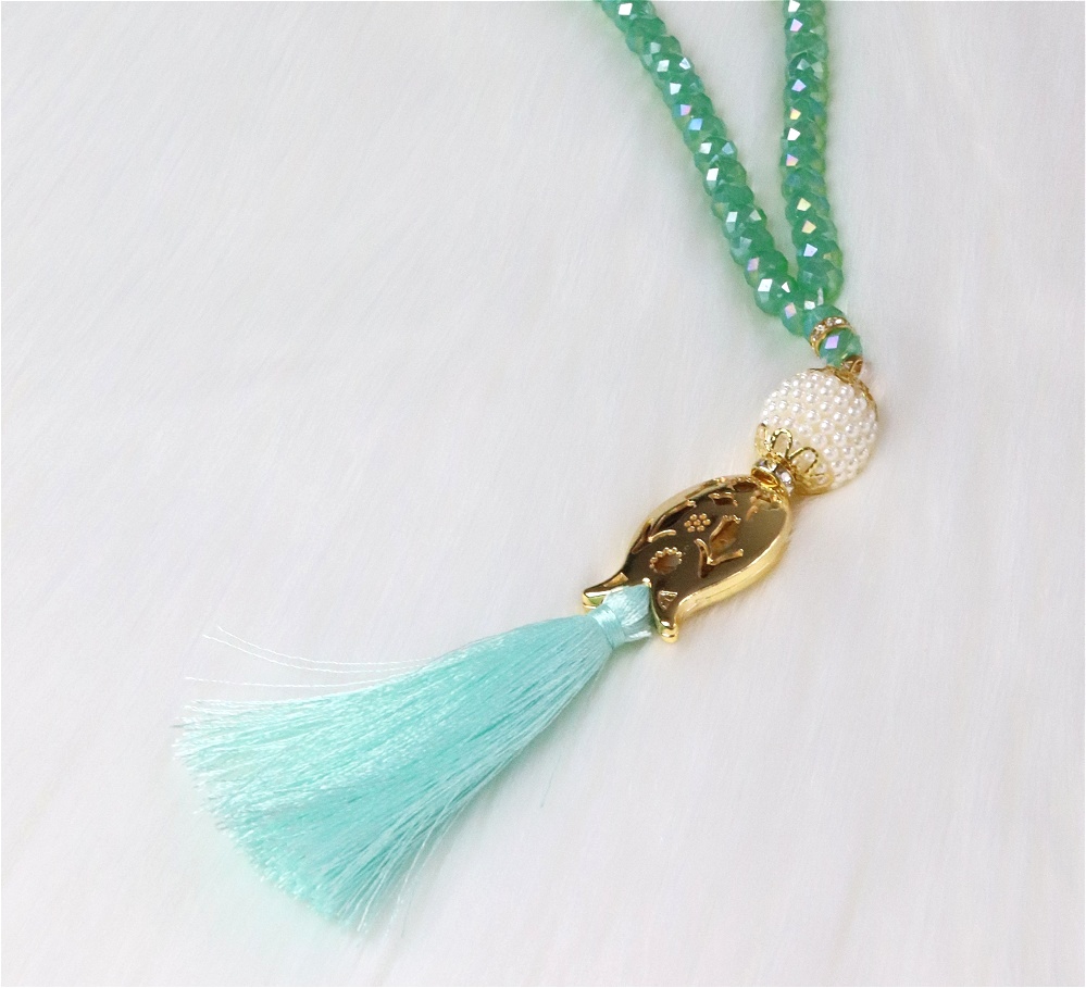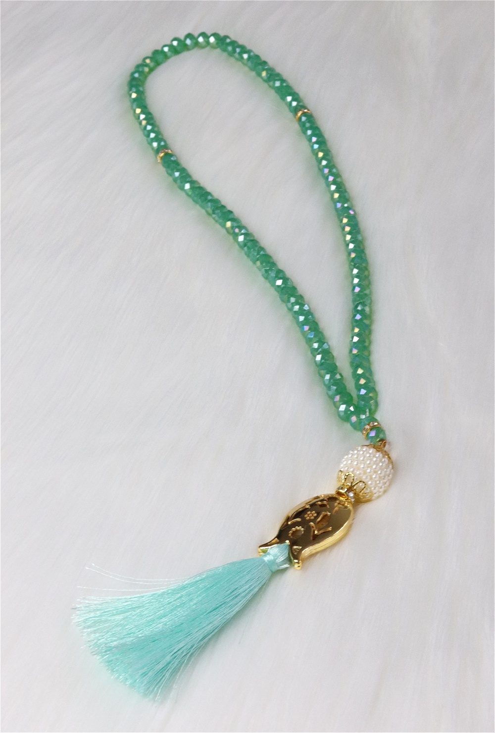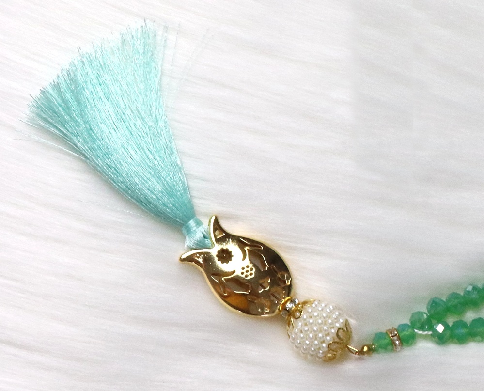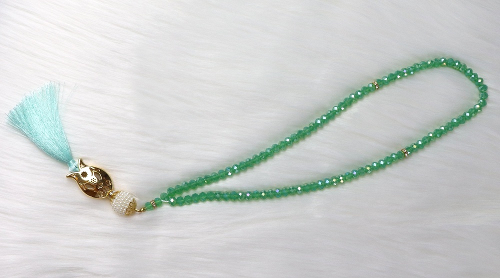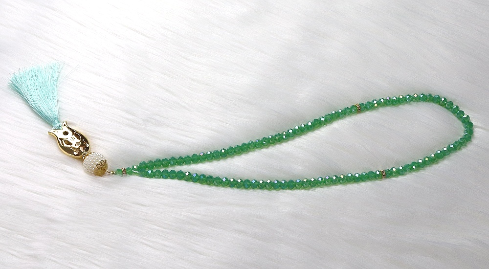 Sebha (chapelet musulman) de luxe à 33 grains en cristal - Sabha de couleur bleu-vert - REF. 35038 (7.50 €)