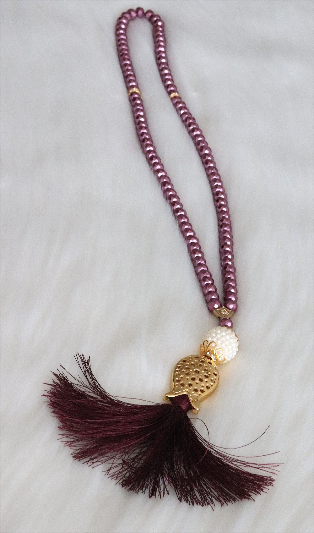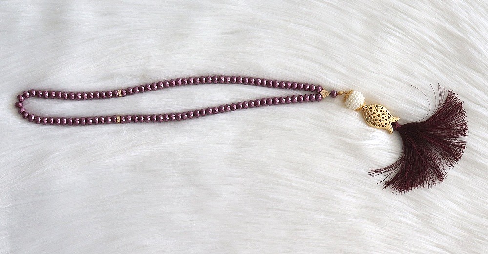 Chapelet "Sebha" de luxe à 99 perles en cristal décoration métallique et perles - Couleur violet - REF. 35235 (12.00 €)