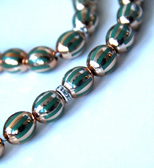 Chapelet décoratif en verre de couleur vert foncé - REF. 7424 (6.50 €)