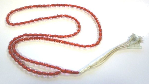 Chapelet "Sebha" transparent rouge (99 grains) avec séparations tous les 33 grains.