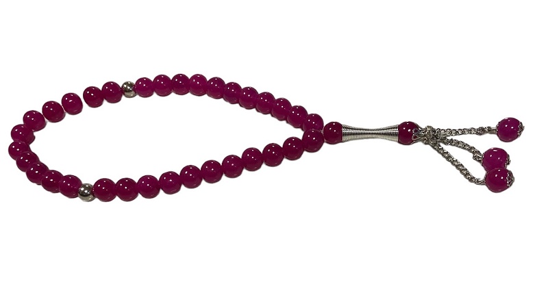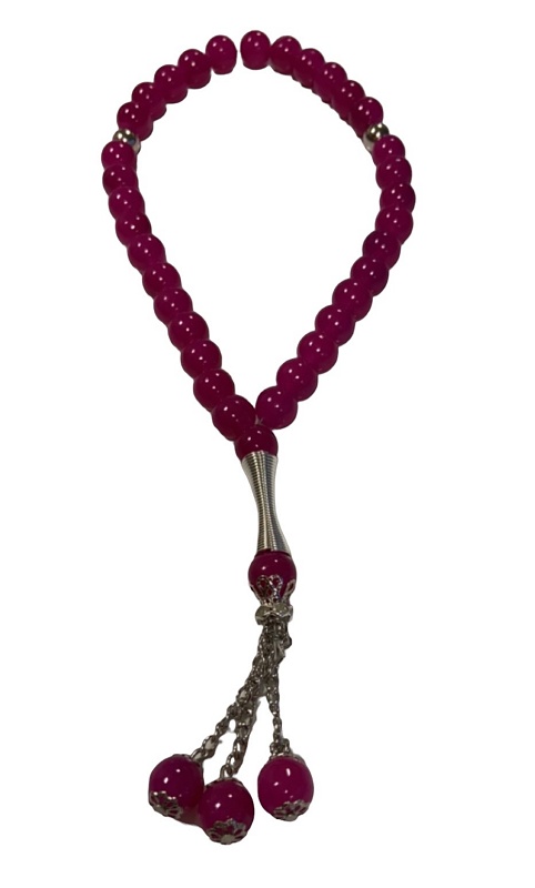 Chapelet (Sebha) de luxe à 33 grosses perles de couleur Rose grenade avec petites perles argentées - REF. 40262 (6.90 €)
