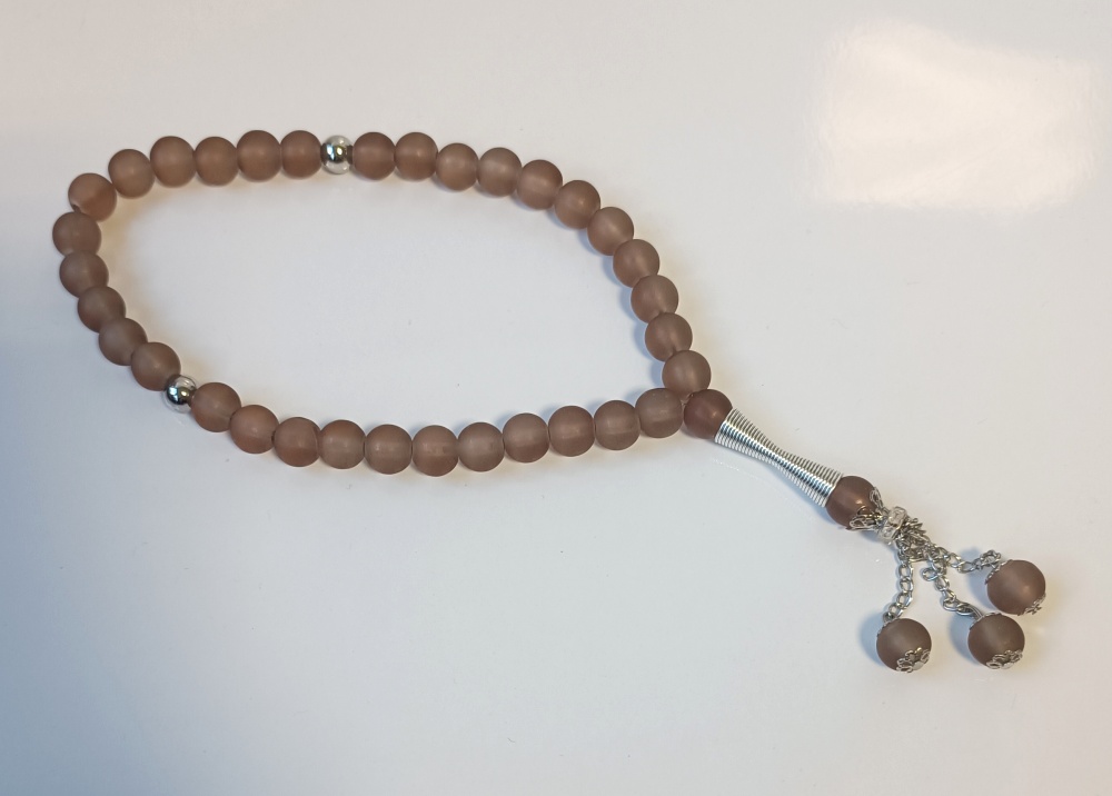 Chapelet (Subha) de luxe à 33 perles de couleur Marron clair avec parties argentées Deco & Cadeau