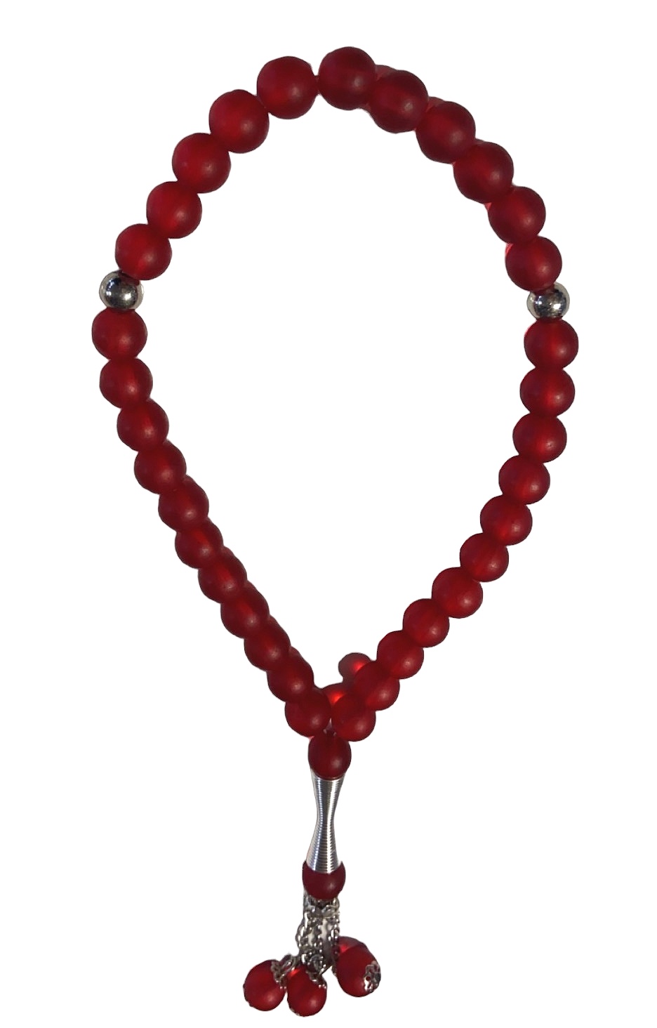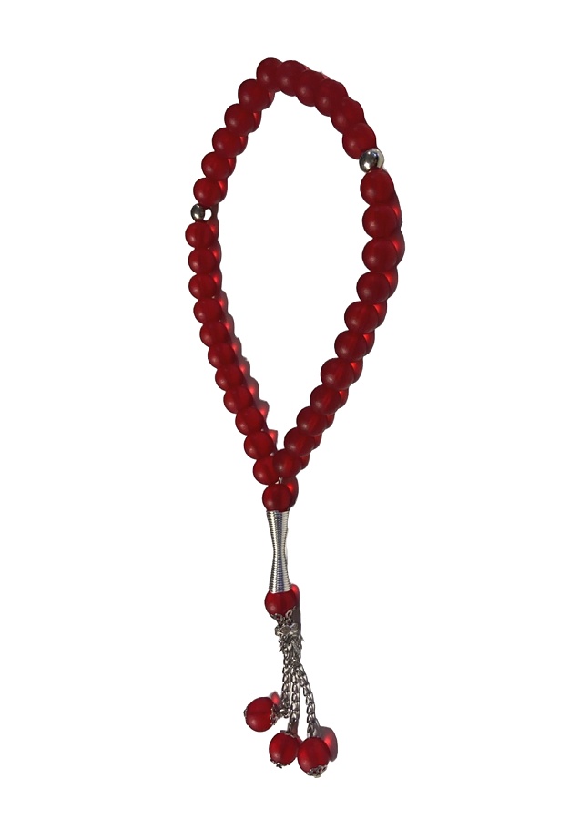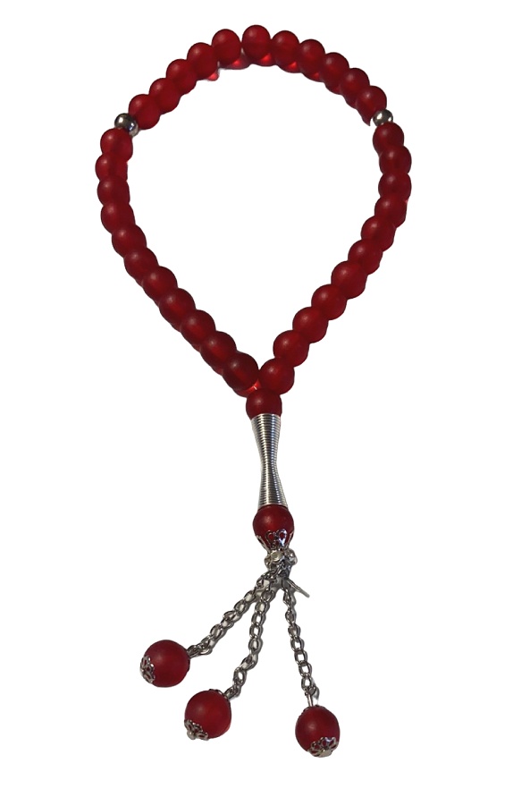 Chapelet (Sebha) de luxe à 33 perles de couleur Rouge fumé avec parties argentées.