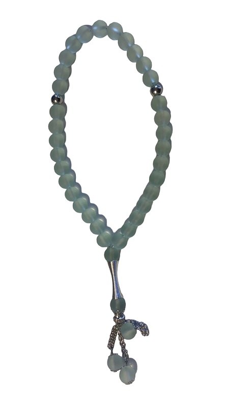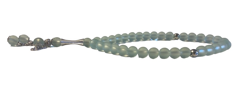 Chapelet (Subha) de luxe à 33 perles de couleur Vert eau avec parties argentées Deco & Cadeau